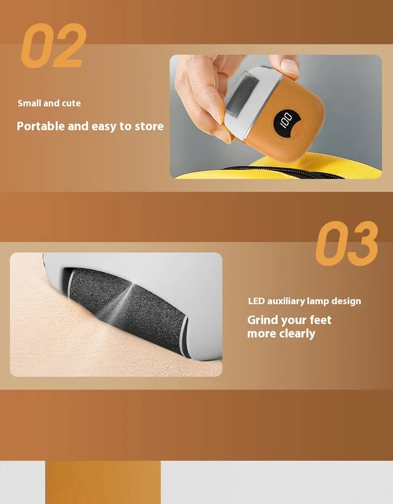 This electric foot grinder delivers salon-quality pedicure results without leaving your home. Designed to effectively remove stubborn calluses, cracked heels, and dead skin, it restores softness and smoothness in minutes. The rechargeable, cordless design ensures complete freedom of movement, while the powerful yet gentle motor provides consistent performance without irritation. Ergonomically shaped for comfortable handling, it allows precise control even in hard-to-reach areas. Whether you maintain your feet regularly or need intensive care, this tool simplifies foot care, saves time and money, and helps you enjoy healthier, smoother feet with minimal effort.