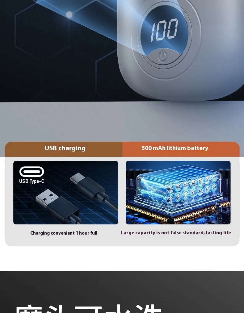 Equipped with a 500mAh rechargeable battery, the device offers reliable cordless use. Modern USB Type-C charging ensures faster, more convenient charging at home or while traveling.