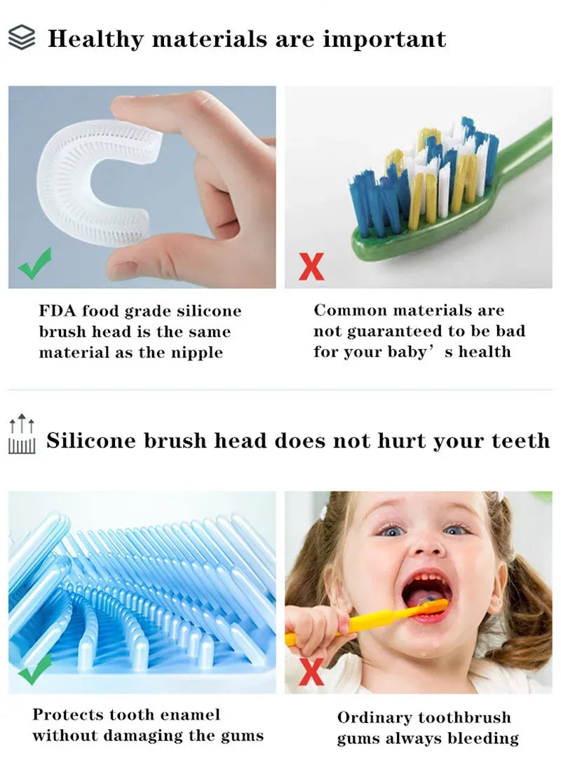 Yes, the soft silicone bristles are gentle on children’s teeth and gums while effectively cleaning.